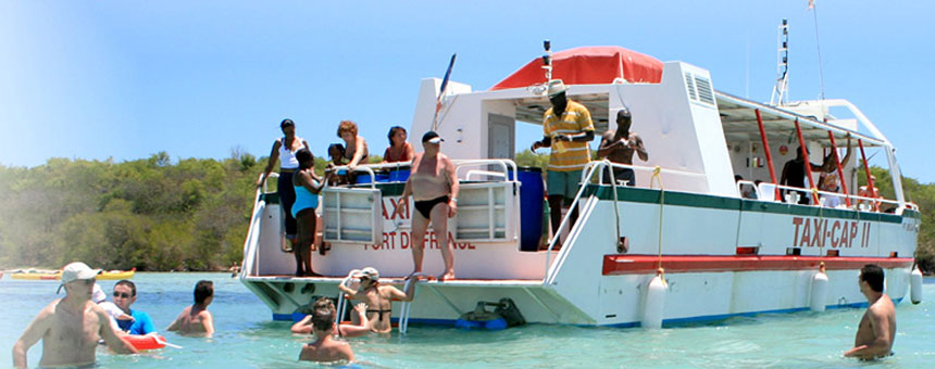 Ce Taxi maritime, spécialiste de la sortie en mer en Martinique, vous permettra de visiter confortablement les trésors d'un gigantesque lagon classé rèserve naturelle. Fonds blancs, mangrove, découverte des différents îlets qui jalonnent le parcours composent les objectifs de votre excursion dans le respect de la nature et de son environnement.
