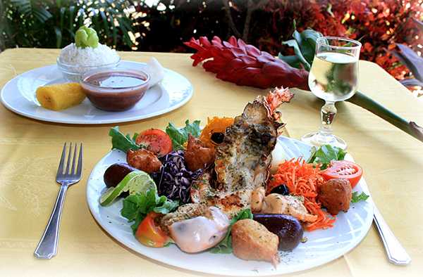 pourrez déguster les différentes spécialités, telle que l’assiette du pêcheur composée de lambi grillé, chatrou, crevettes en fricassée et accras.